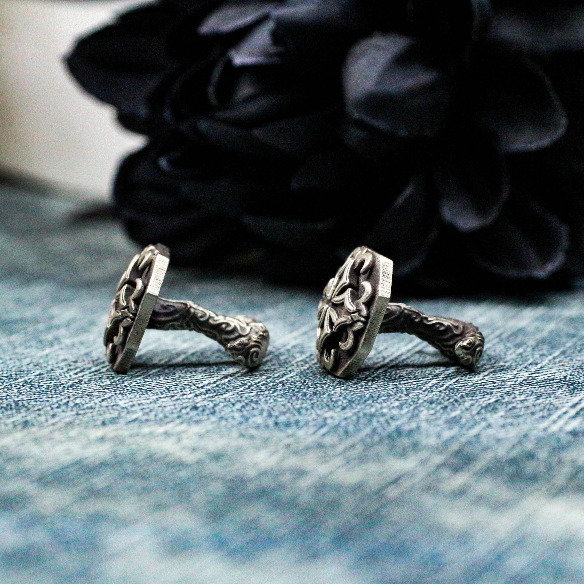 These polygonal iris cufflinks feature a unique geometric design inspired by the shapes and patterns found in nature. The intricate detailing of the iris adds a modern and artistic touch, making them perfect for those who appreciate contemporary style and fine craftsmanship. Whether for a wedding or a special occasion, these cufflinks are a standout piece.