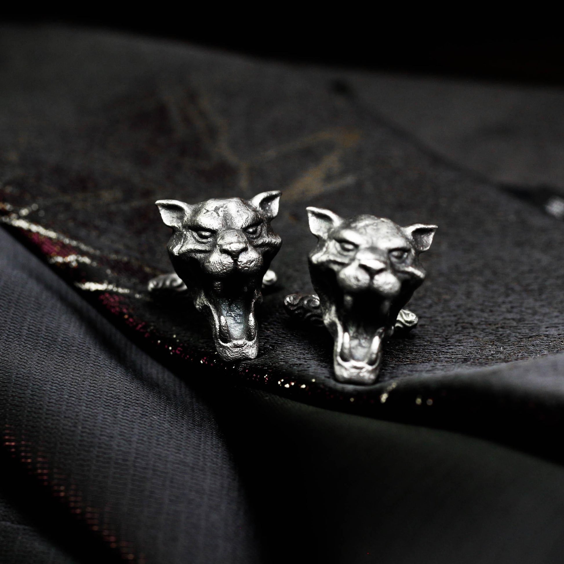 Saber-Toothed Tiger Cufflinks - 925 Sterling Silver Handmade