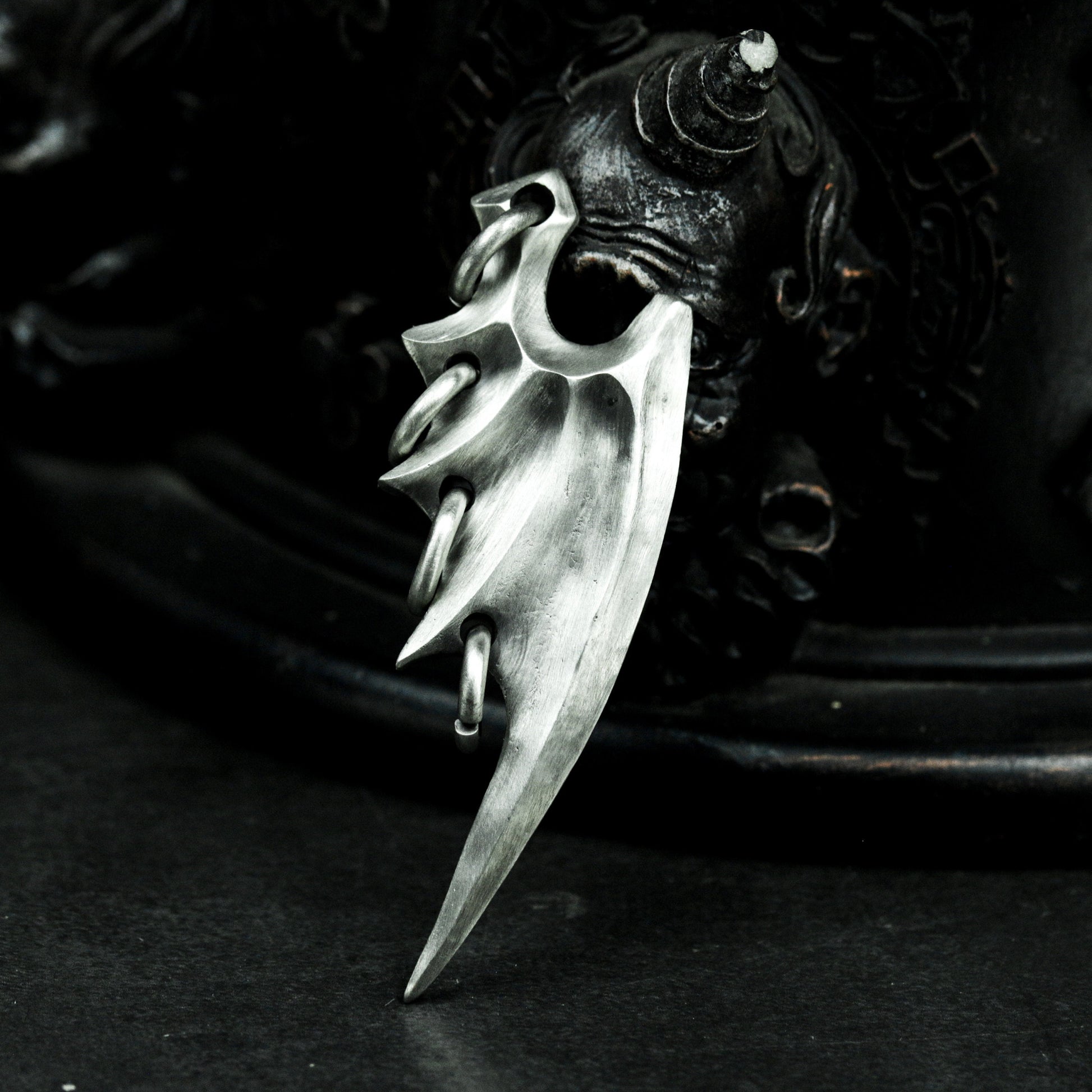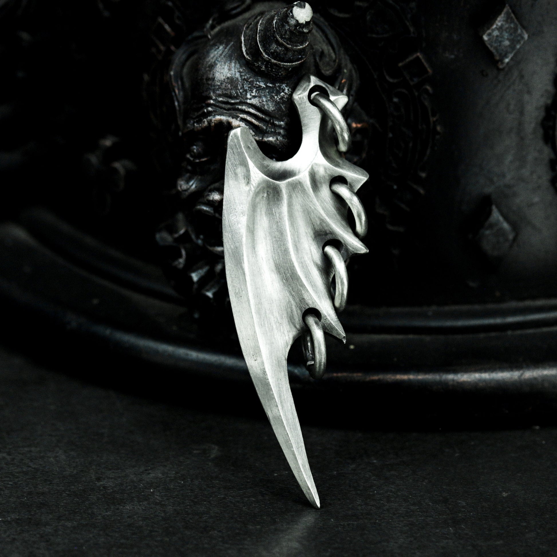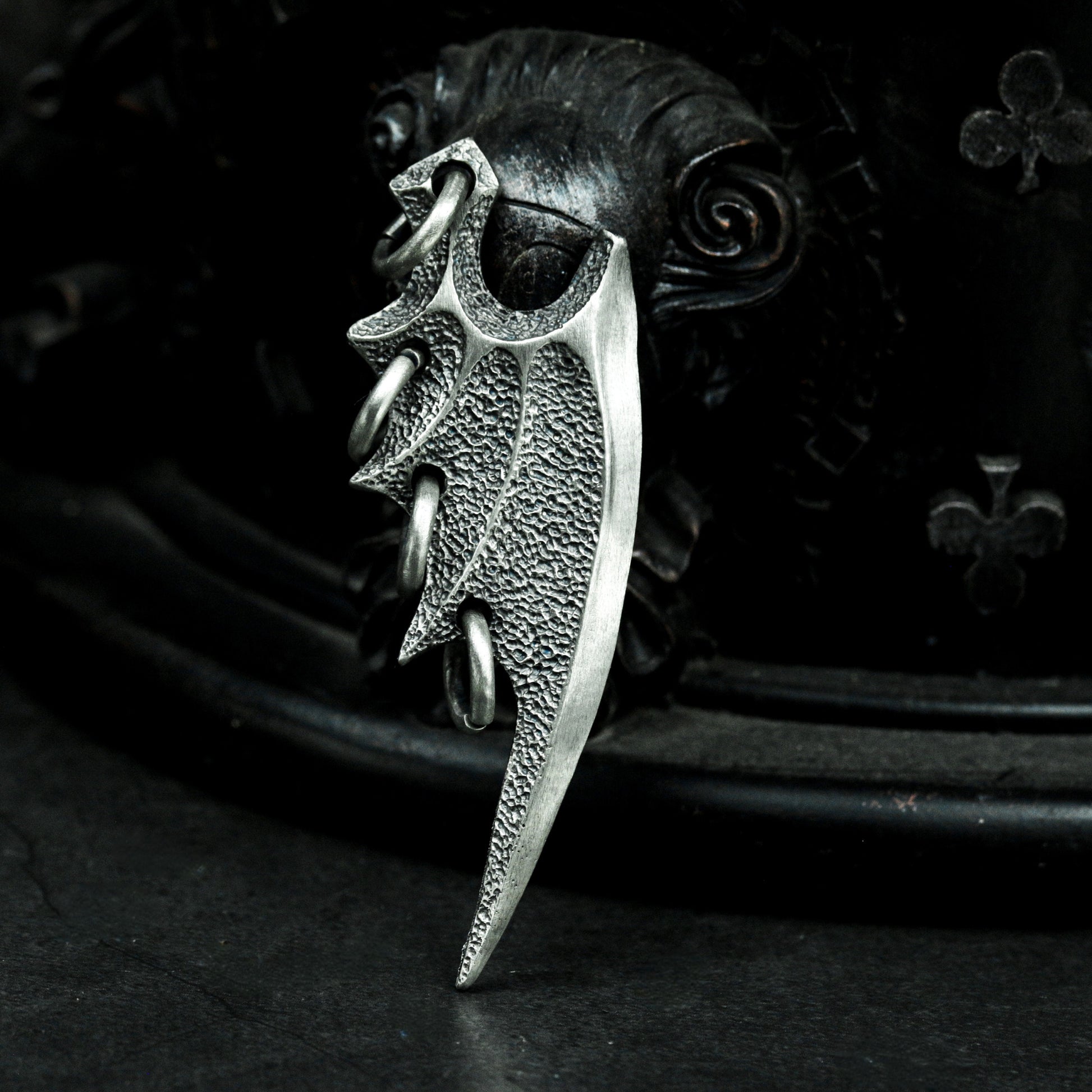 This pendant set features two unique bat wing designs¡ªone smooth and sleek, the other sharp and aggressive. Representing freedom through darkness, they evoke gothic mystery and the spirit of the night.