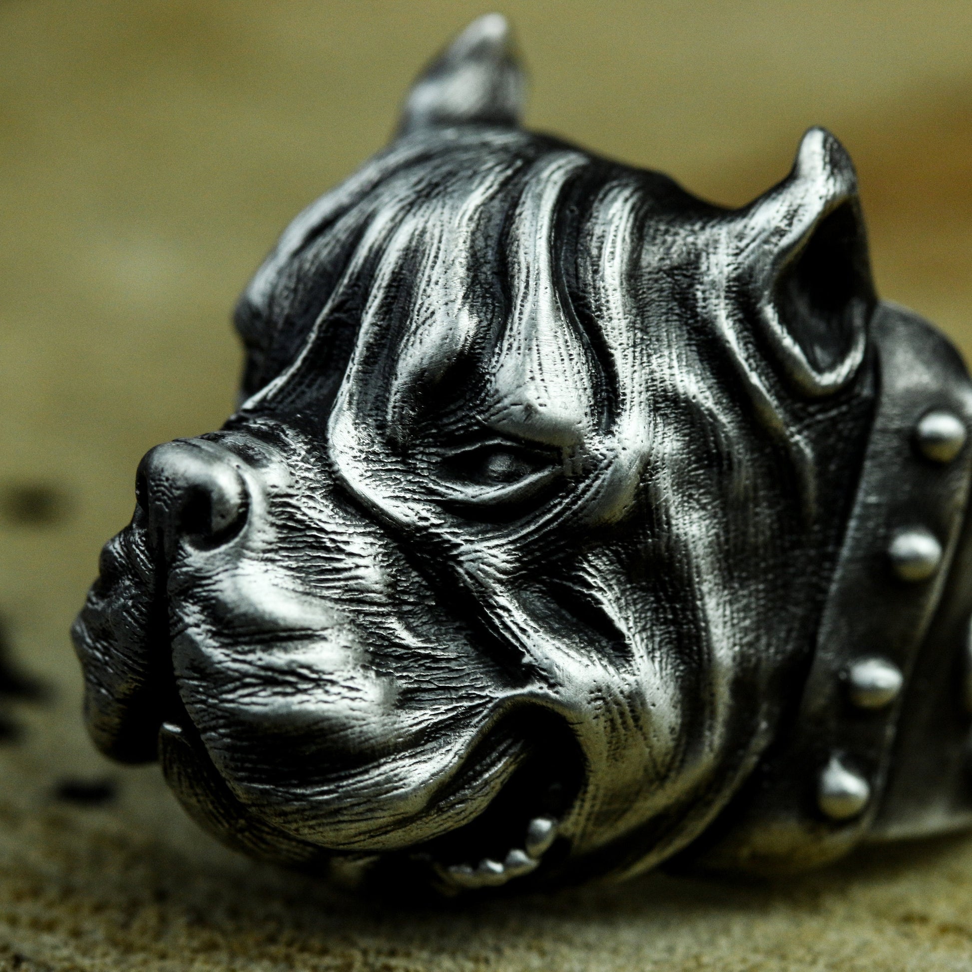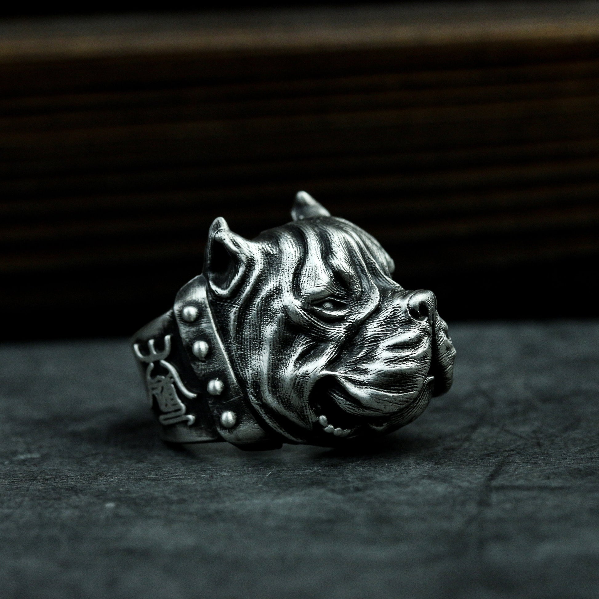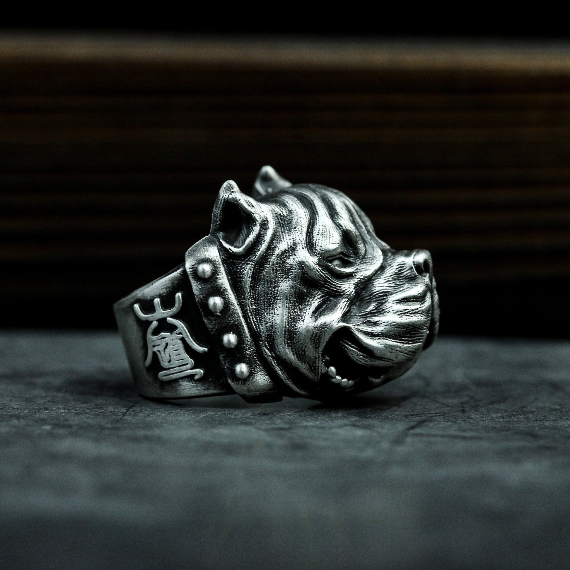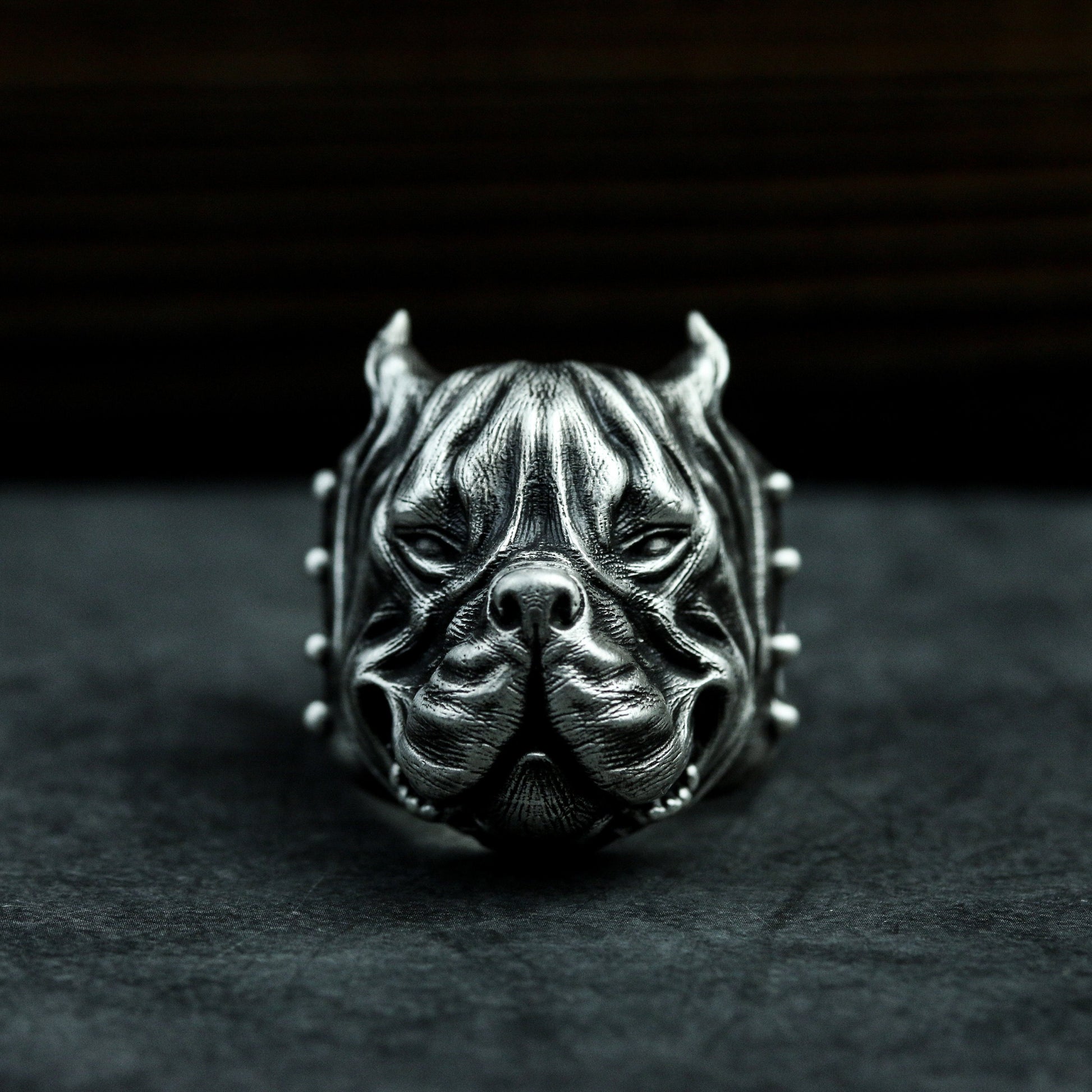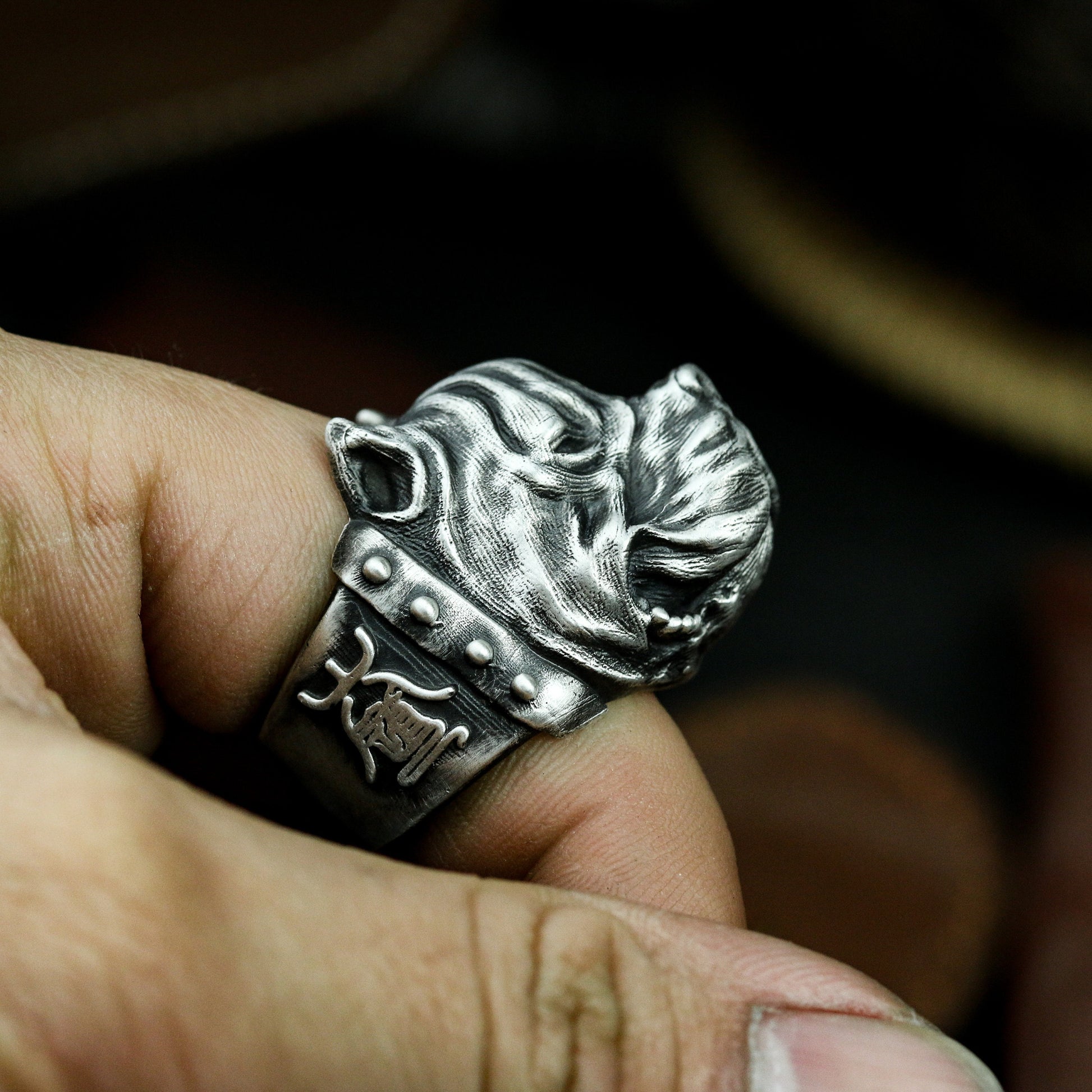 Bulldog Ring - 925 Silver Handmade Wrinkled Warrior