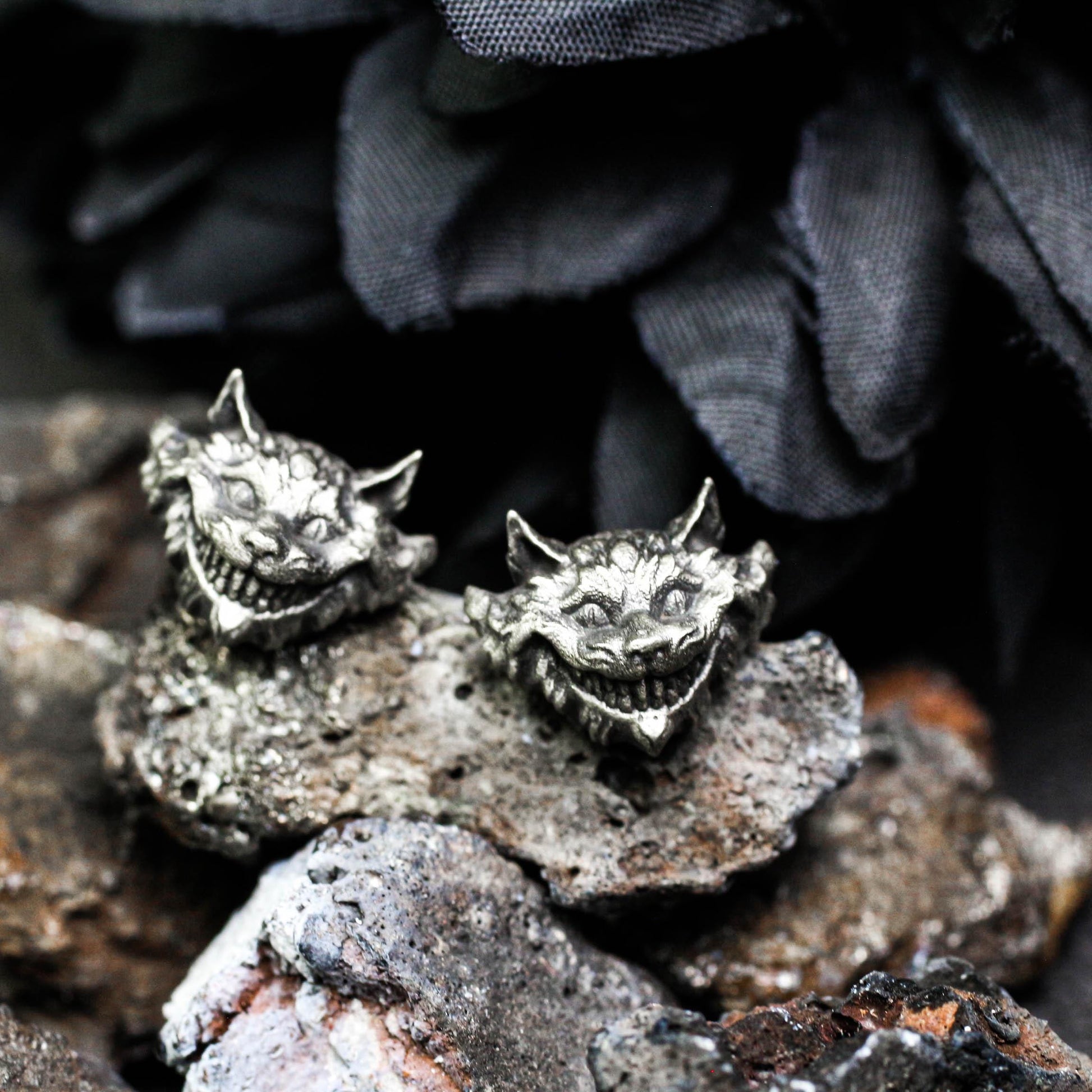 Unveil a twisted charm with these handcrafted Grinning Cat Stud Earrings, forged from solid 925 sterling silver. With wickedly wide smiles and mischievous eyes, these feline figures radiate eerie delight and gothic whimsy.