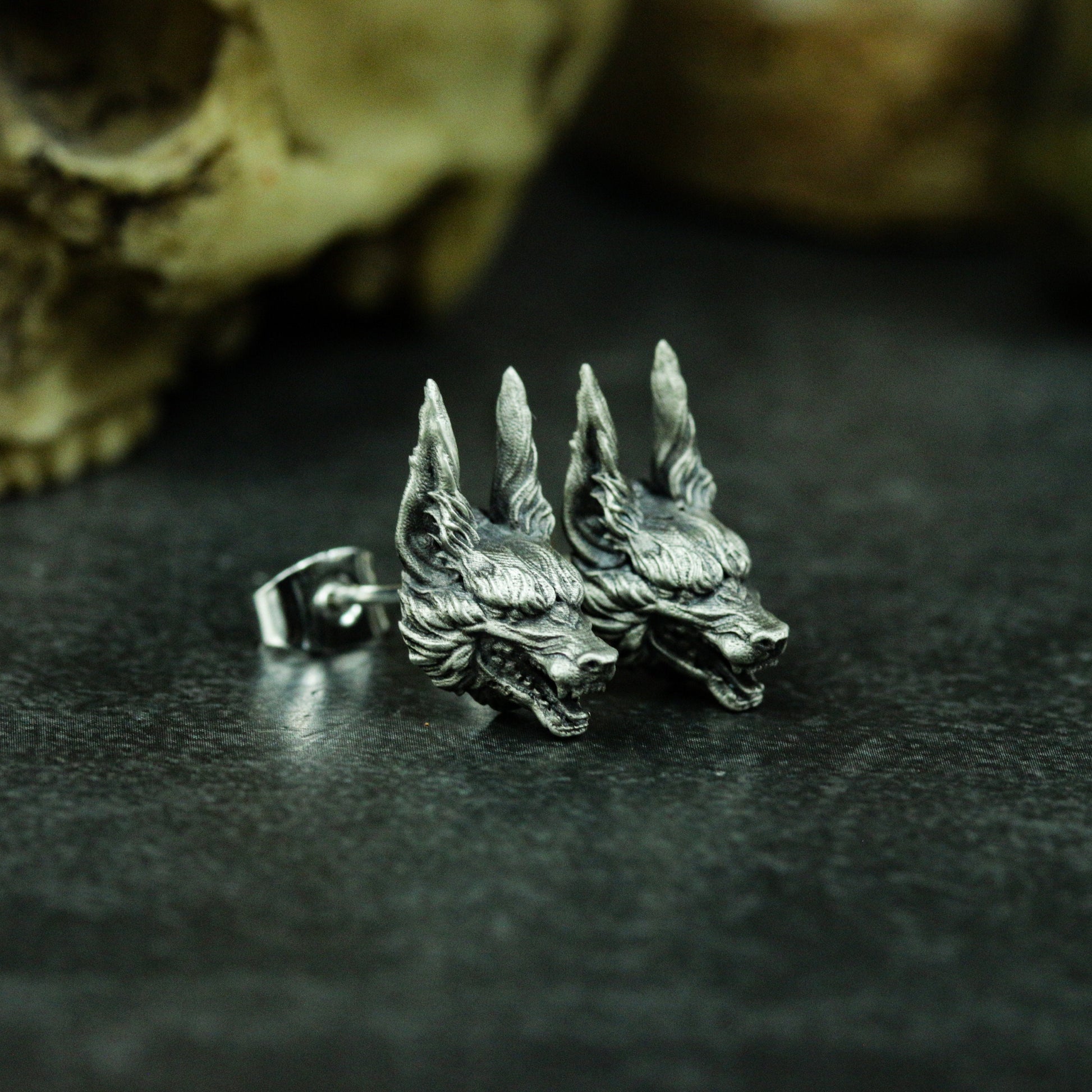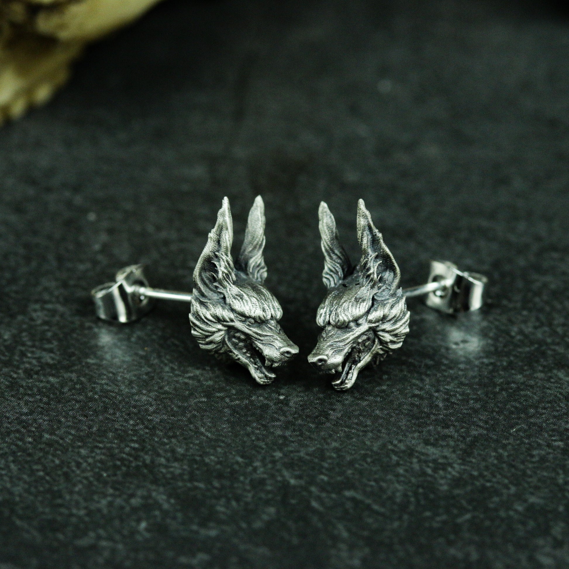 Long Ear Wolf Earrings ¨C Handmade 925 Silver Gothic Beast Studs