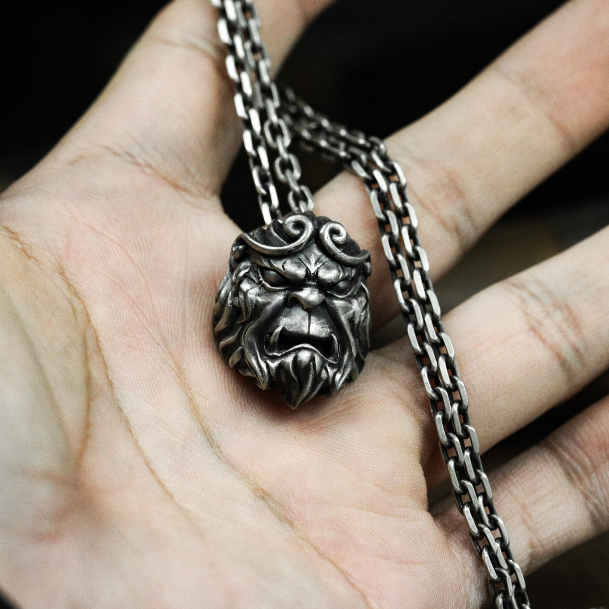 Monkey King Pendant with Staff - 925 Sterling Silver Handmade