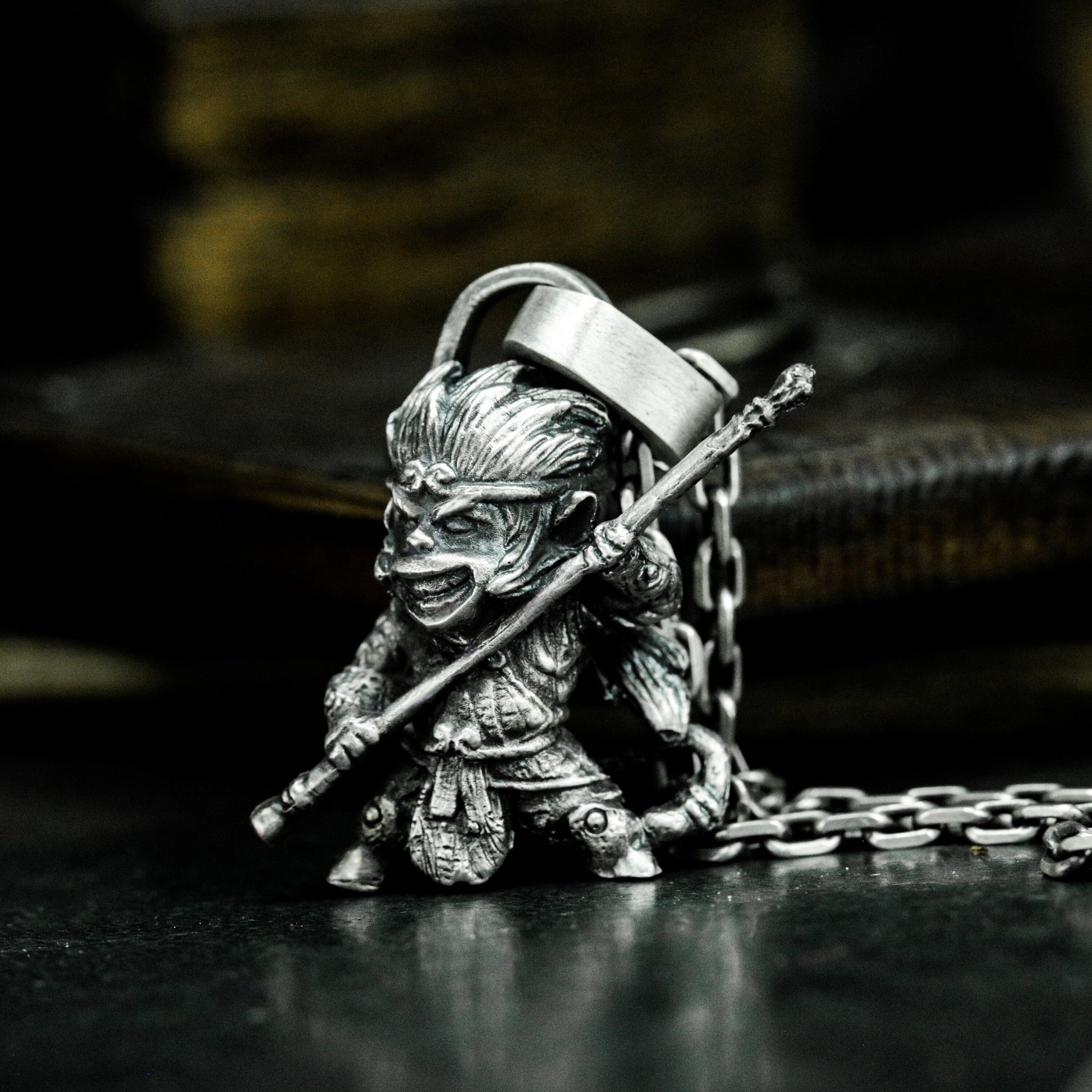 Blending silver with brass accents, this pendant shows the Monkey King gripping his legendary staff¡ªevoking divine power and warrior spirit.