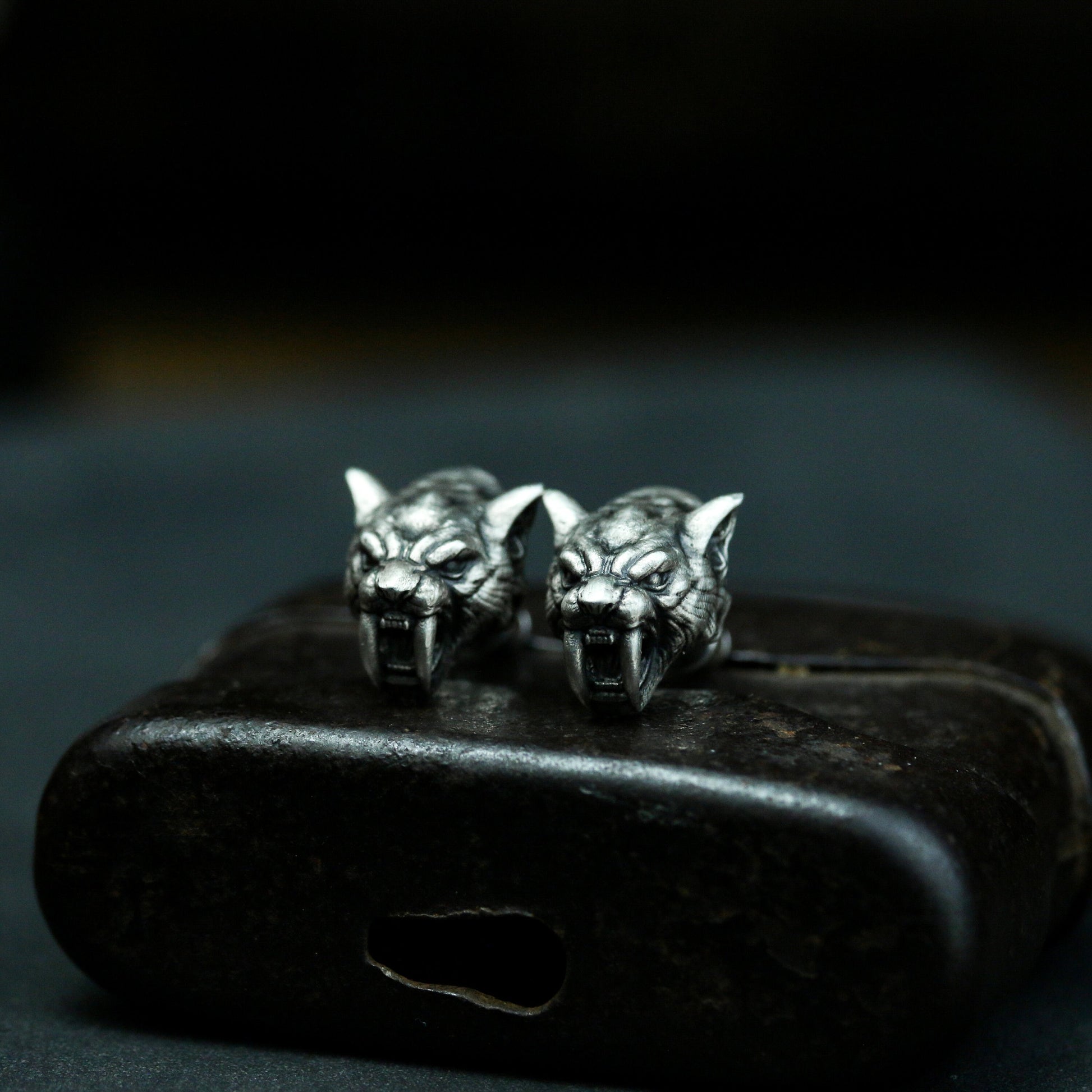 Saber-toothed Tiger Earrings - 925 Silver Handmade