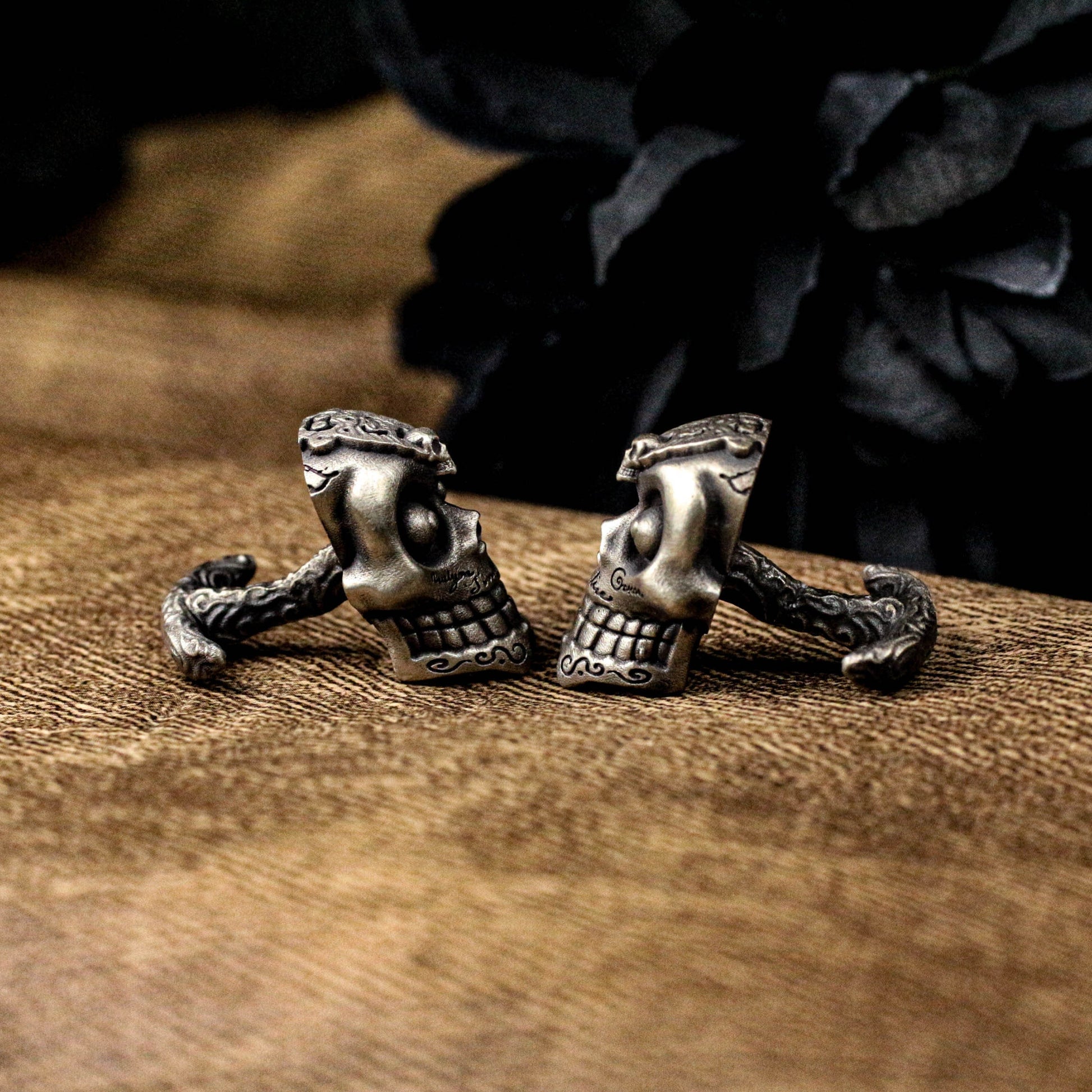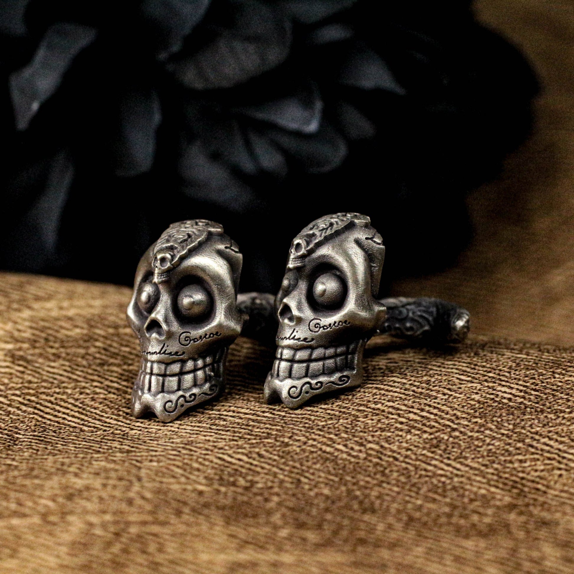 Embrace the Day of the Dead aesthetic with these skull cufflinks, perfect for adding a gothic and cultural touch to your wardrobe. Ideal for a biker or casual look.