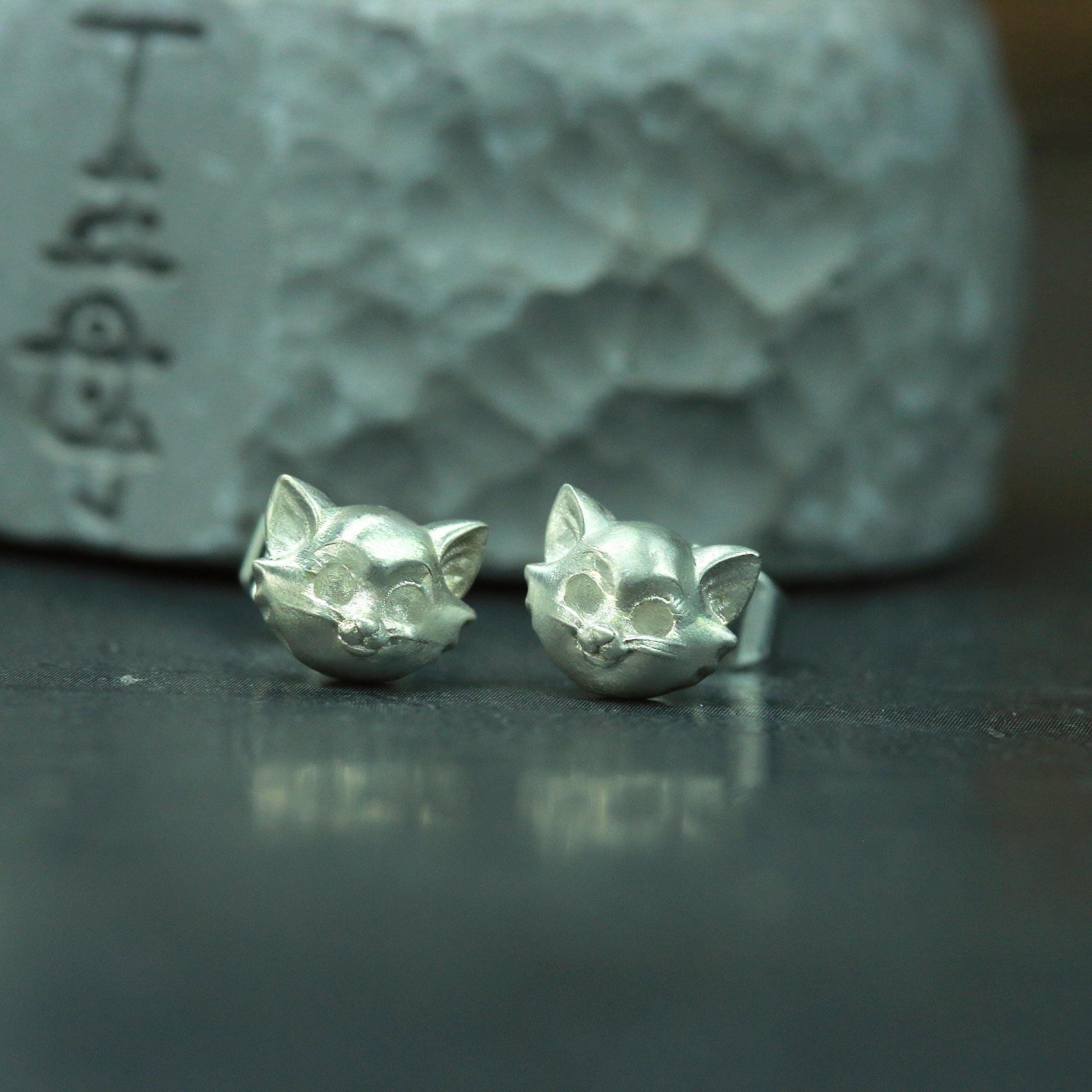Super Cute Kitty Cat Earrings - 925 Sterling Silver Handmade